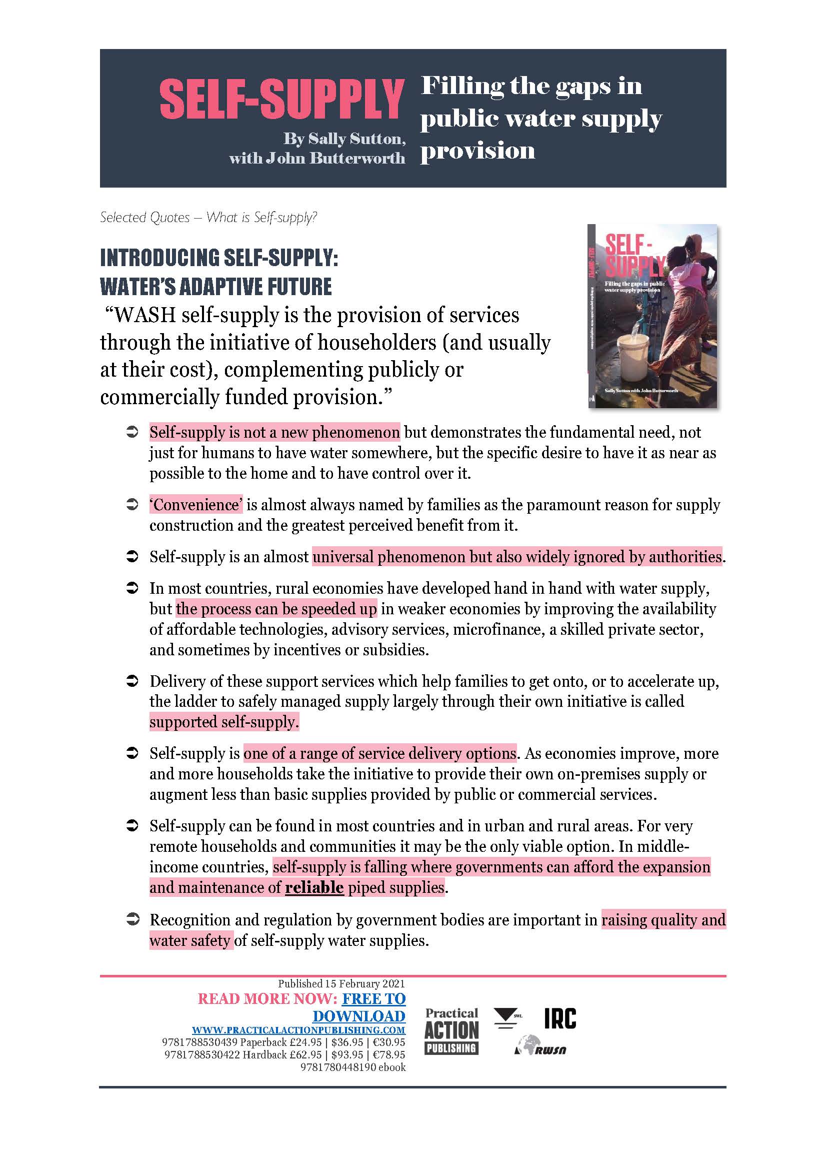 Briefing note on the new book by Sally Sutton and John Butterworth: “Self-Supply: Filling the gaps in public water supply provision.”